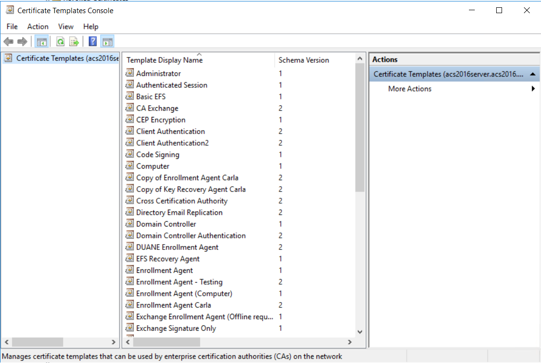 Right-click Certificate Templates, and then select Manage. The Certificate Templates Console appears.