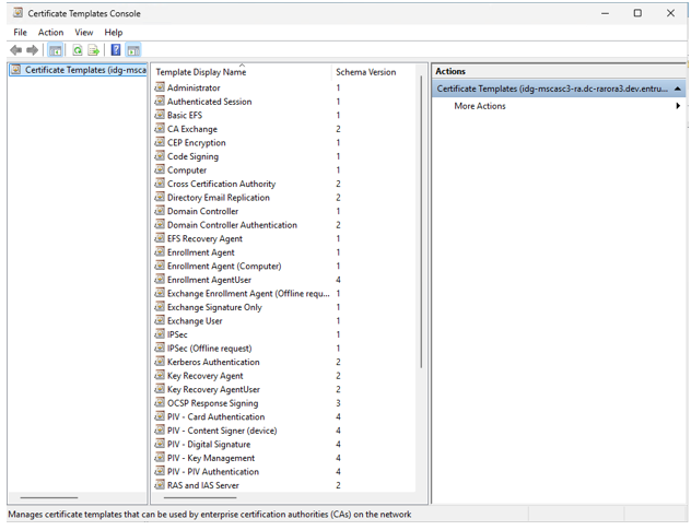 Scroll the template list, right-click the PIV - PIV Authentication template and select Duplicate Template. The Properties of New Template dialog box appears.